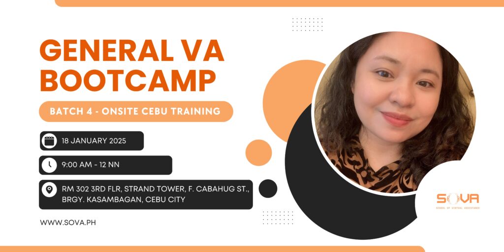 **Instructor**: Coach Katherine Padilla,  Founder of KatVantage Outsourcing **Language**: Bisaya / Tagalog / English **Location**: SOVA.ph Office – Room 302, 3rd Floor, The Strand Tower, Brgy Kasambagan, Cebu City, Philippines **Duration**: 4 consecutive Saturdays, starting January 18, 2025 until February 1, 2025 **Time**: 9 AM – 12 PM **Course Fee**: ₱ 4,000 There are plenty […]